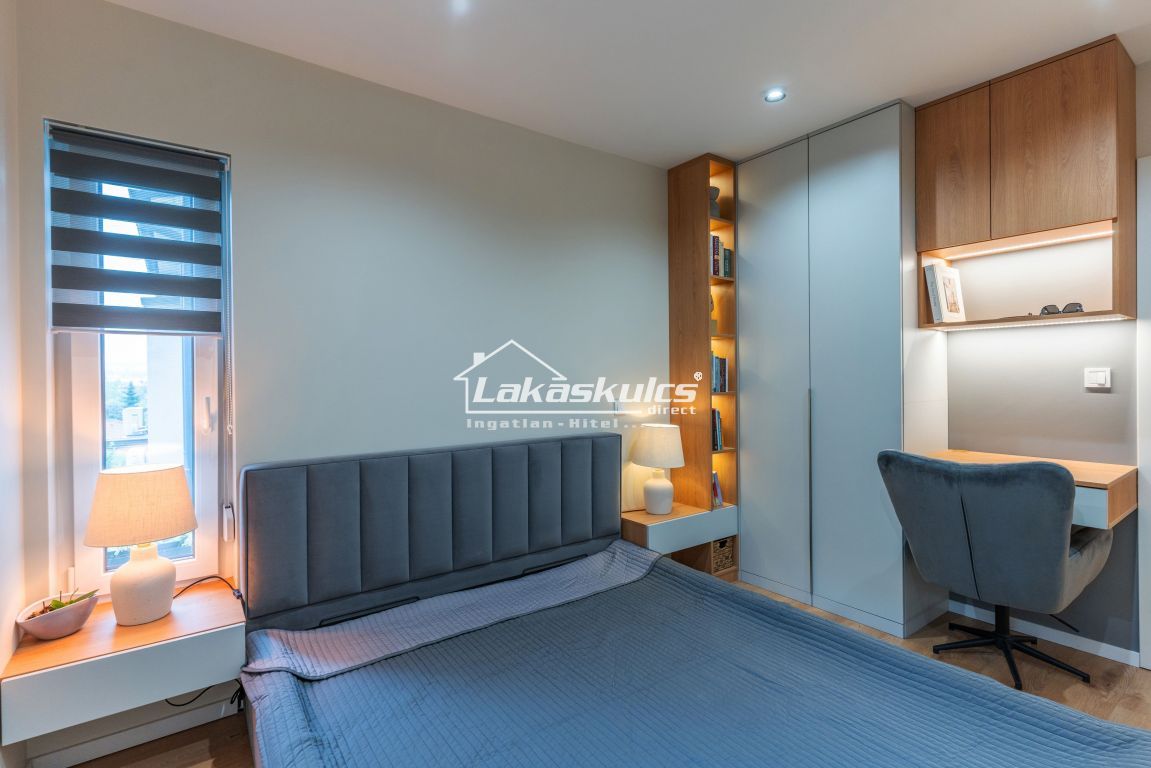 • Fürdőszoba: walk-in zuhany + kád, beépített bútorokkal és stílusos