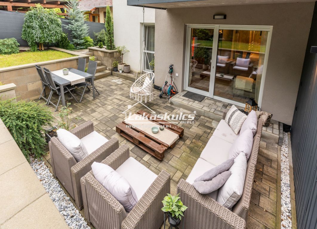 Vételár: 120 000 000 Ft Alapterület: 64 m² Építés éve: 2020 Szobák száma: 2 + nappali Saját kert: 138 m² Teraszok száma: 4 db (összesen ~58 m²)